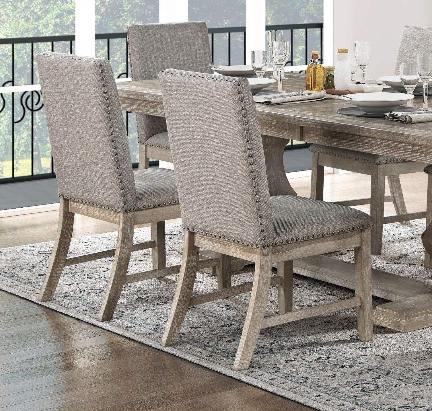 This set includes a solid wood dining table with an extension leaf and six matching chairs. Finished in a brown-gray tone, it offers a traditional look with added flexibility for larger gatherings. Designed for everyday dining with the option to expand when needed.
